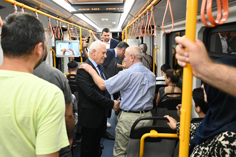 Bursa Büyükşehir Belediye Başkanı Mustafa Bozbey, seferlerin normale döndüğü ve sorunsuz ulaşımın sağlandığı Odunluk İstasyonu’nu ziyaret ederek incelemelerde bulundu. Odunluk İstasyonu’ndan Merinos İstasyonu’na kadar BursaRay ile yolculuk yapan Başkan Mustafa Bozbey, vatandaşlarla samimi bir şekilde sohbet ederek ulaşım konusundaki talep ve görüşlerini dinledi.