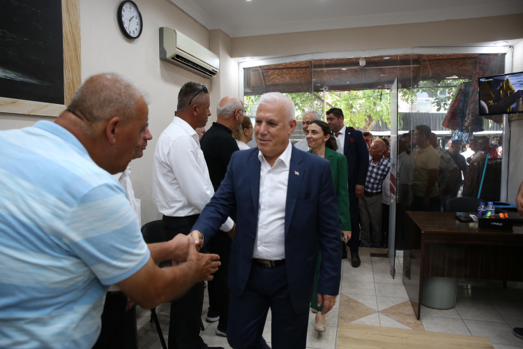 ‘Başkan Bozbey Burada’ projesi kapsamında Mustafakemalpaşa ilçesinde çeşitli ziyaretlerde bulunan Bursa Büyükşehir Belediye Başkanı Mustafa Bozbey, beraberindeki Bursa Milletvekili Nurhayat Altaca Kayışoğlu, Mustafakemalpaşa Belediye Başkanı Şükrü Erdem ve CHP İlçe Başkanı Gökhan Demir ile birlikte Mustafakemalpaşa Mahalle Muhtarları Derneği’nde üreticilerle ve köylülerle buluştu. Bir hafta öncesine kadar kilosunu 10 lira civarında sattıkları kavun ve karpuzun şimdi toptancılar tarafından 2-3 lira civarında alınmak istendiğini dile getiren köylüler, yaşadıkları mağduriyet sebebiyle ürünlerini tarladan toplayamadıklarını söyledi.