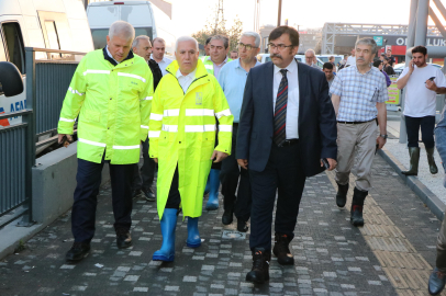 Bursa’da etkili olan sağanak yağışın hayatı olumsuz etkilemesi üzerine şehir dışındaki programlarını iptal ederek hızlıca kente dönen Bursa Büyükşehir Belediye Başkanı Mustafa Bozbey, Odunluk İstasyonu’ndaki su tahliye çalışmalarını yerinde inceledi. Konunun teknik olarak incelemesi için talimat verdiğini söyleyen Başkan Bozbey, “Saat gece 12’ye kadar arkadaşlarımız Odunluk İstasyonu’nda su çekme işlemini sürdürecekler. Aksilik olmazsa sabah itibariyle seferlerimiz o hattan devam edecek. Ulaşımla ilgili bir sorun kalmayacak” dedi.