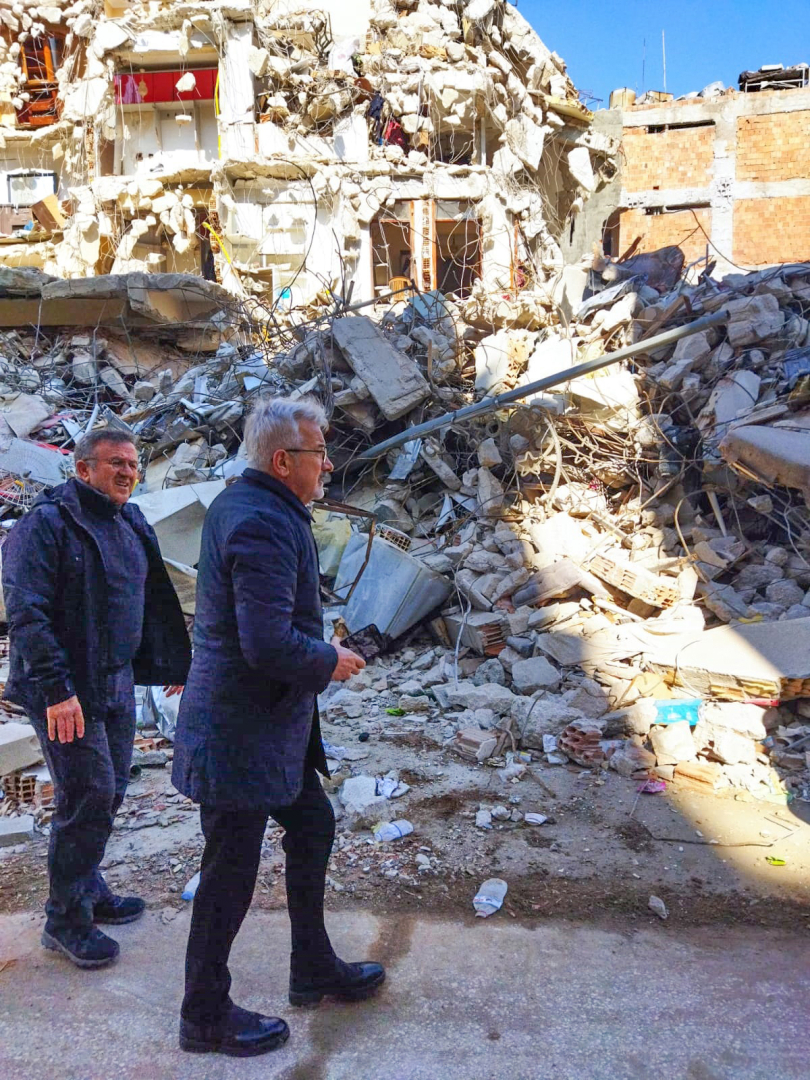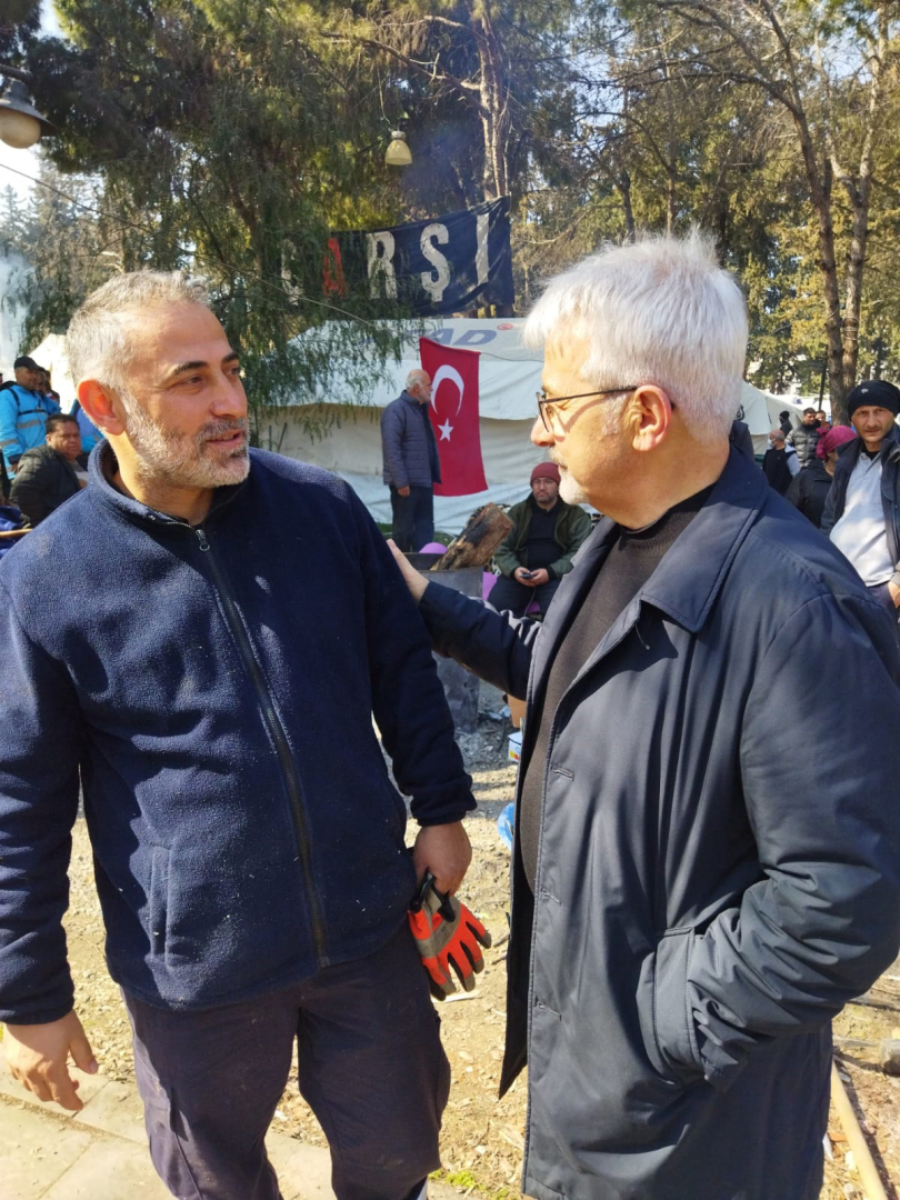 Nilüfer Belediye Başkanı Turgay Erdem ve Başkan Yardımcısı Zafer Yıldız, Hatay Samandağ’a giderek depremzedelere yönelik yardım çalışmalarını yerinde inceledi.