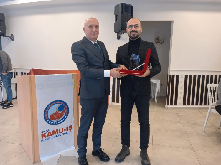 Son olarak, katılımcılara teşekkür eden Hamzaçebi, “Hep birlikte, sendikamızı daha da büyütecek ve geçmişte kaybettiğimiz haklarımızı telafi edeceğiz. Birlikte güçlü bir geleceğe yürüyeceğiz,” diyerek konuşmasını sonlandırdı. Plaketini kurum çalışanı Ferdi Sönmez’e Genel Başkan Hamzaçelebi verdi.