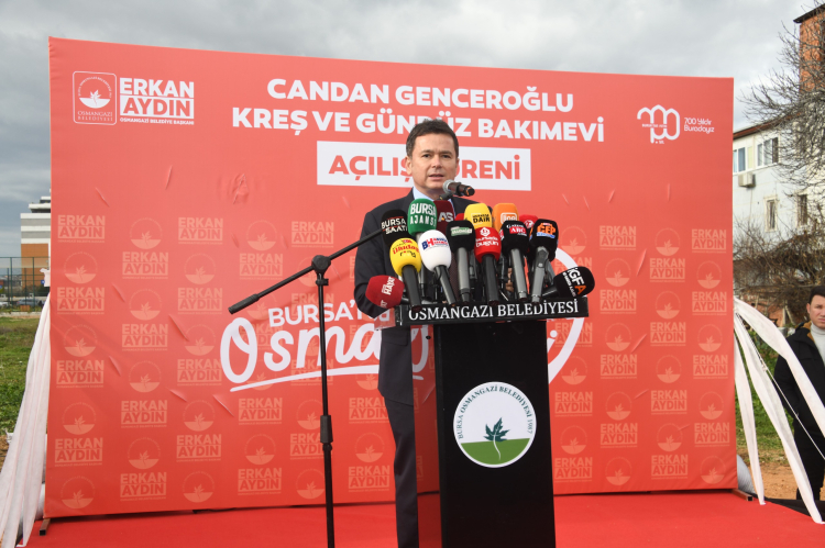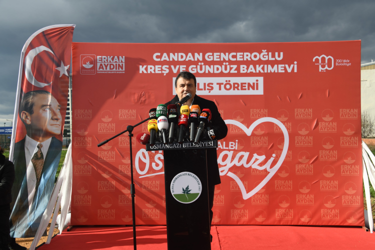 Çocuklara yönelik eğitim yatırımlarını ilçe genelinde yaygınlaştırmayı hedefleyen Osmangazi Belediyesi, bu kapsamda hizmete giren dördüncü kreş olan Candan Genceroğlu Kreş ve Gündüz Bakımevi’nin açılışını görkemli bir törenle gerçekleştirdi. Osmangazi Belediye Başkanı Erkan Aydın’ın öncülüğünde düzenlenen açılış törenine TBMM CHP Grup Başkan Vekili Ali Mahir Başarır’ın yanı sıra CHP Bursa Milletvekili Hasan Öztürk, CHP Parti Meclis Üyesi Canan Taşer, Mudanya Belediye Başkanı Deniz Dalgıç, CHP Osmangazi İlçe Başkanı Raşit Gürbüz, belediye başkan yardımcıları, meclis üyeleri, muhtarlar, hayırsever Genceroğlu ailesi ile çok sayıda vatandaş katılım gösterdi.