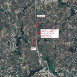 Bursa Büyükşehir Belediyesi, Bursa-Mudanya Karayolu Aydınpınar mevkiinde ve Mudanya gidiş yönünde yolun en sağ şeridinde daraltma yapılacağını duyurdu.