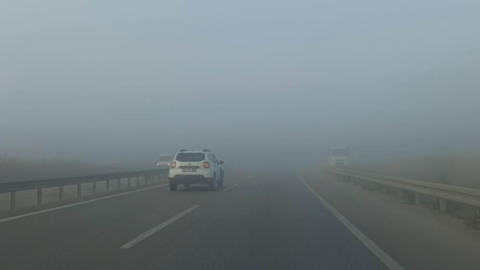 Bursa-İzmir yolunda etkili olan yoğun sis sonucu görüş mesafesi 5 metreye kadar düştü. Sisin hakim olduğu yolda sürücülerin zorlukla ilerlediği görüldü.
