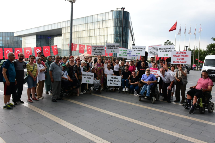 Bursa Kent Konseyi Engelliler Meclisi, engelli bireyler için uygulanan Özel Tüketim Vergisi (ÖTV) muafiyetinin kaldırılacağı iddialarına ilişkin seslerini duyurmak ve anayasal haklarına sahip çıkmak için Kent Meydanı’nda basın açıklaması düzenledi.
