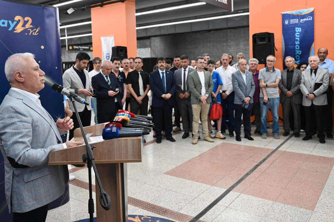 Bursalıları sabahın ilk ışıklarından günün sonuna kadar evine, işine, okuluna ve sevdiklerine kavuşturan Bursa’nın toplu ulaşımda en çok tercih edilen markası BursaRay 22 yaşında. Büyükşehir Belediyesi eski başkanı Erdem Saker zamanında temelleri atılan, Erdoğan Bilenser döneminde faaliyete giren BursaRay’ın 22. yılı yapılan törenle kutlandı. 15 Haziran 2002 saat 17:00’da ilk biletin satıldığı yer olan Merinos İstasyonu’nda yapılan törene, Bursa Büyükşehir Belediye Başkanı Mustafa Bozbey’in yanı sıra Bursa Milletvekilleri Hasan Öztürk ve Orhan Sarıbal, CHP İl Başkanı Nihat Yeşiltaş, BURULAŞ Genel Müdürü Fahrettin Beşli, BURULAŞ’ın ilk genel müdür Fikret Yılmaz, çalışanlar ve vatandaşlar katıldı.