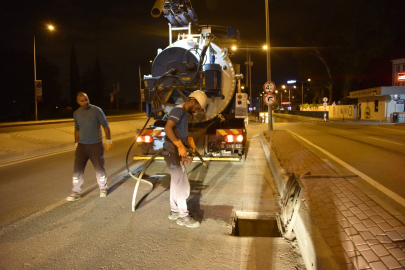 Büyükşehir Belediyesi BUSKİ Genel Müdürlüğü ekipleri, muhtemel sel ve su baskınlarının önüne geçmek amacıyla gece boyunca temizlik çalışması yapıyor.