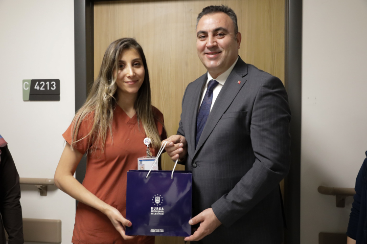 Büyükşehir Belediyesi Başkanvekili Mehmet Aydın Saldız, 2025'in son ve 2026’nın ilk ziyaretini Bursa Şehir Hastanesi’ne yaptı. Başkanvekili Saldız, beraberindekilerle birlikte hastane personeline çiçek ve çeşitli hediyeler verdi. Başkanvekili Saldız, bebekleri 2025 yılının doğan son bebeği olarak kayıtlara geçen Kader ve Deniz Kaplanoğlu çiftini ziyaret etti. Çocuklarına Manolya ismini veren Kaplanoğlu çiftine çiçek ve bebek seti hediye edilirken, Saldız minik bebeğe de altın taktı.