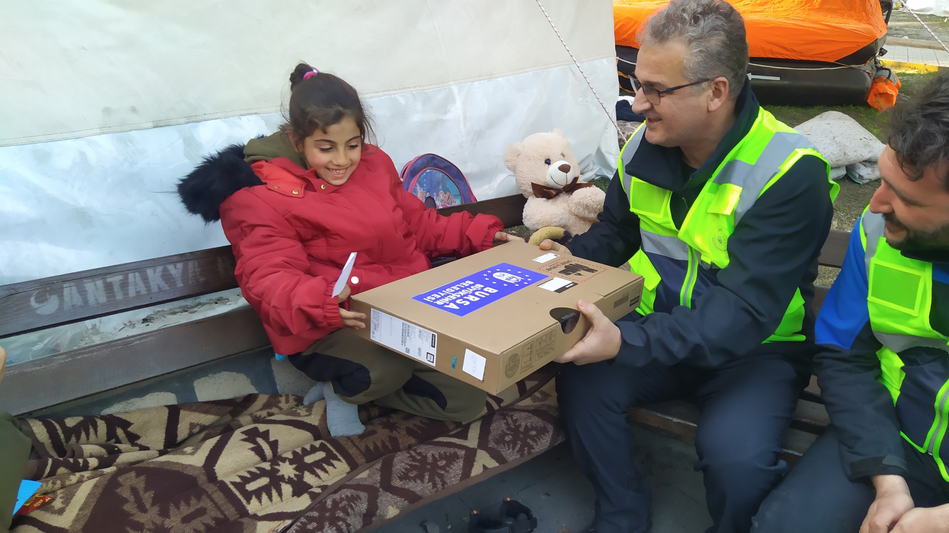 Hatay’da deprem mağduru vatandaşların yaralarını sarmak için mahalle mahalle gezerek yardımlarını ulaştıran Bursa Büyükşehir Belediyesi ekipleri, depremzede miniklerin yüzünü güldürmeye devam ediyor. Evlerinin yıkılması sonucu çadırda kalan 7 yaşındaki Melek’in bilgisayar isteğine duyarsız kalamayan Büyükşehir Belediyesi ekipleri, minik kızı ziyaret edip istediği bilgisayarı teslim ederek yüzünü güldürdü.