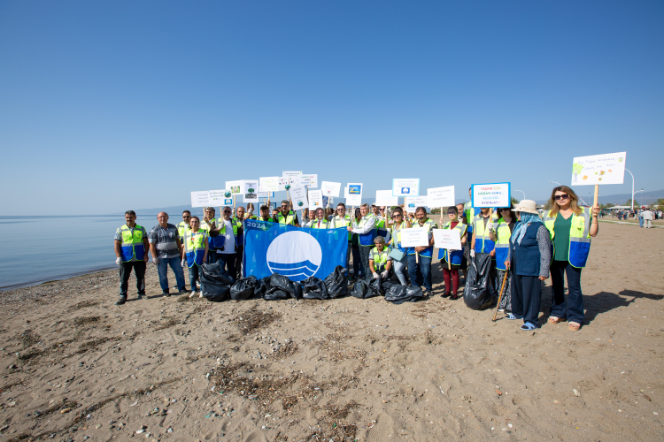 Bursa Büyükşehir Belediyesi personeli, çevre temizliğine dikkat çekmek amacıyla Gemlik ilçesindeki Kumsaz Plajı’nda sahil temizliği yaptı.