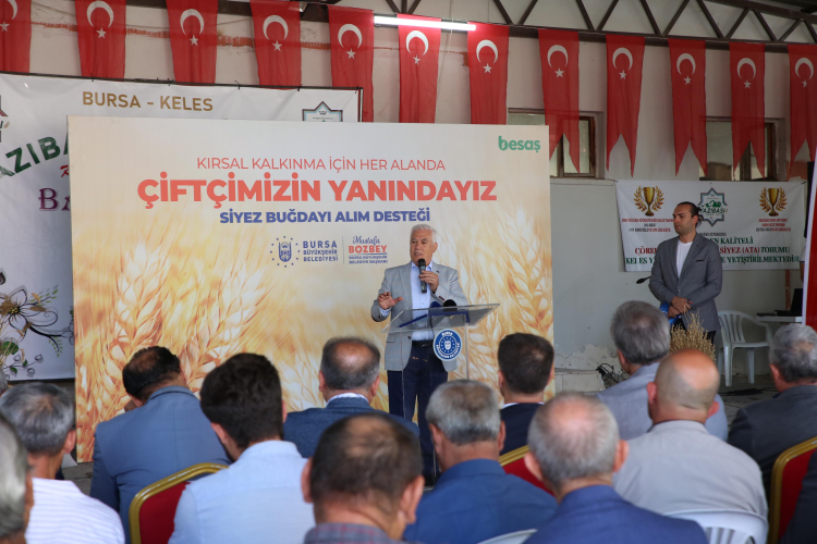 Bursa Büyükşehir Belediyesi, dağ ilçelerinin kalkınması ve üreticinin gelirlerini arttırmak amacıyla Bursalı çiftçilerden doğrudan modern buğdayın atası kabul edilen siyez buğdayı alımını gerçekleştirdi. Emeğin ne demek olduğunu çok iyi bildiğini söyleyen Büyükşehir Belediye Başkanı Mustafa Bozbey, “Köylünün nasıl zahmet ve emeklerle mücadele verdiğini, yeterince gelir elde edemediğini biliyoruz. Hiç merak etmeyin. Çiftçimizin hem ürününün yanında olacağız hem de ürününü tarlada bırakmamak için mücadele edeceğiz” dedi.