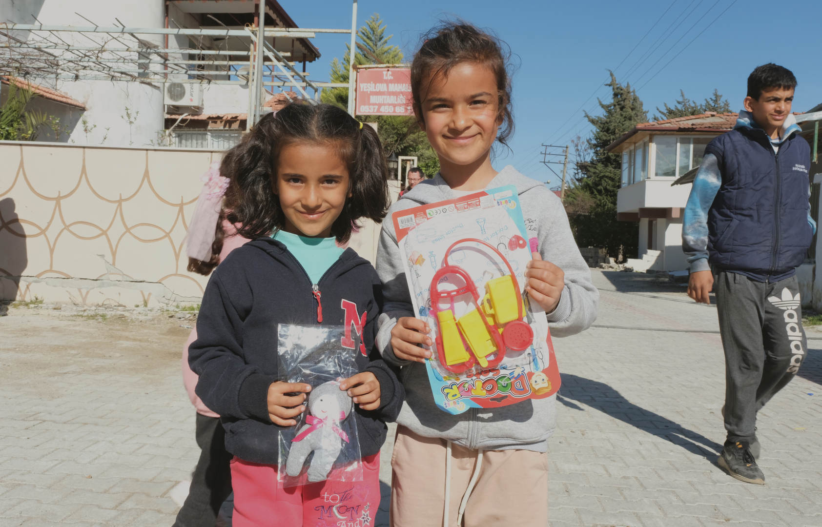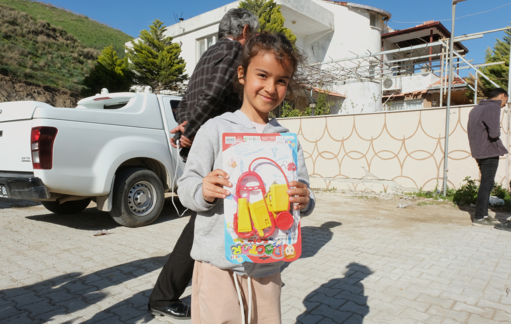 Erzak dağıtımı çalışmaları sırasında çocuklardan gelen talepleri de tek tek not ekipler, daha temin ettikleri malzemelerde bu kez çocuklar için yollara düşüyor. Oyuncakların yanı sıra eğitim çağındaki çocuklar için de eğitim setleri dağıtılıyor.