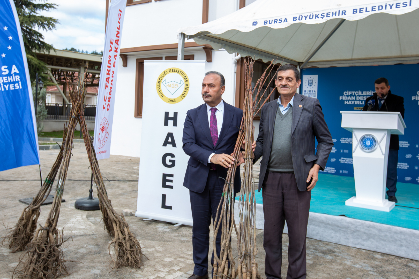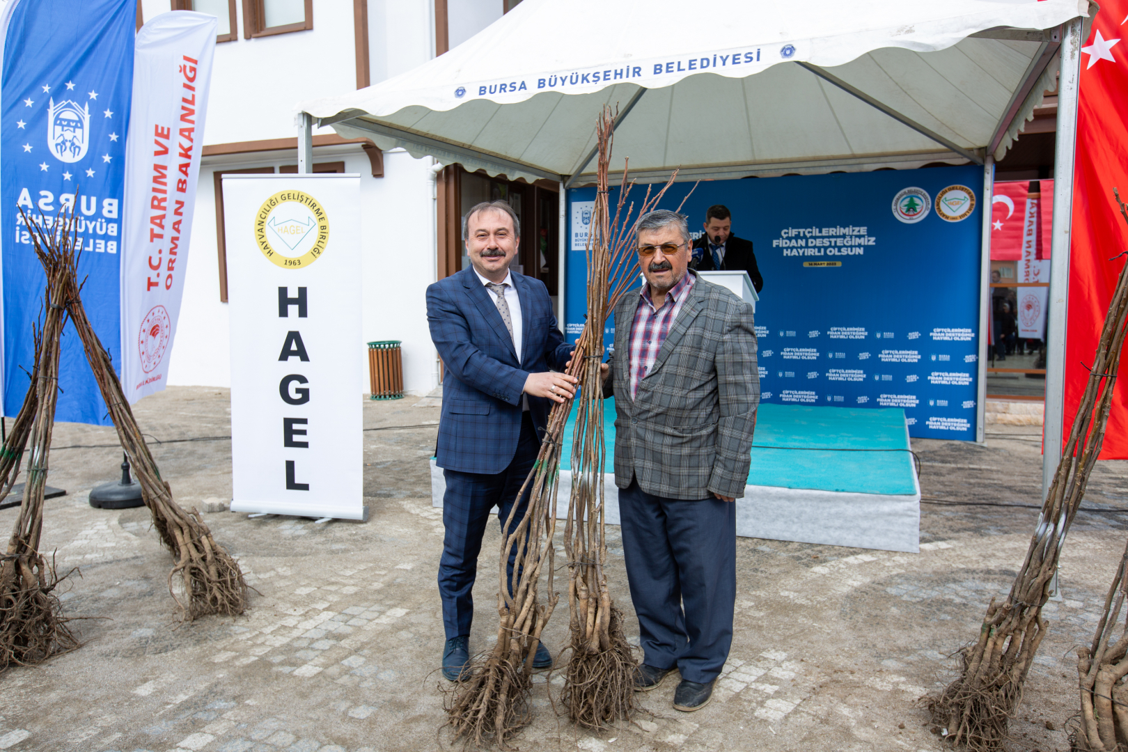 Bursa Büyükşehir Belediyesi, kırsal kalkınma hedefleri doğrultusunda Harmancıklı çiftçilere 6100 adet ceviz fidanı dağıttı.