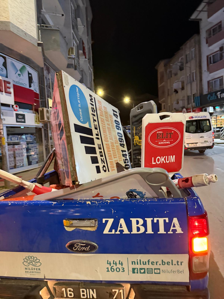 Nilüfer Belediyesi zabıta ekipleri, Çalı Mahallesi'nde yaya ve engelli yollarını işgal eden tüm materyalleri sabah erken saatlerde topladı.