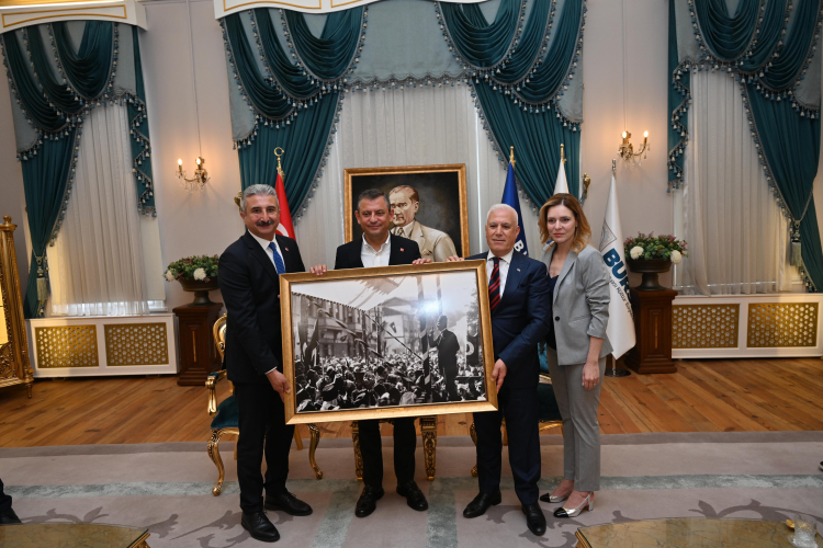 Bursa’da ve Tarihi Belediye Binası’nda CHP Genel Başkanı Özgür Özel’i ağırlamaktan büyük memnuniyet duyduklarını söyleyen Büyükşehir Belediye Başkanı Mustafa Bozbey, “Daha önce bu tarihi binada Büyükşehir Belediye Meclis’leri düzenleniyordu. Daha sonra restorasyon çalışmaları yapıldı. Şimdi misafirlerimizi ağırlıyoruz. Önderimiz Gazi Mustafa Kemal Atatürk de bu salonda zeybek oynadı. Bu açıdan da binamız ayrıca önem taşıyor. Tekrar hoş geldiniz” diye konuştu.