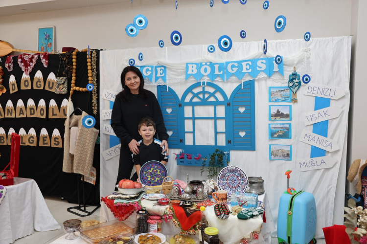 Atatürk Anaokulu’nun sevgi dolu minik öğrencileri, birbirinden güzel öğretmenlerinin öncülüğünde okulda yer alan görevlilerin yardımıyla Türkiye’nin 7 bölgesi ile Yerli ve Milli Teknoloji masalarını kurdu. Her bir sınıf masasını ait olduğu bölgenin kıyafetleri ile yiyecek ve içecekleriyle donattı. Yapılan etkinliğin ardından öğrenciler yapılan yiyecek ve içecekleri afiyetle tadına baktı.
