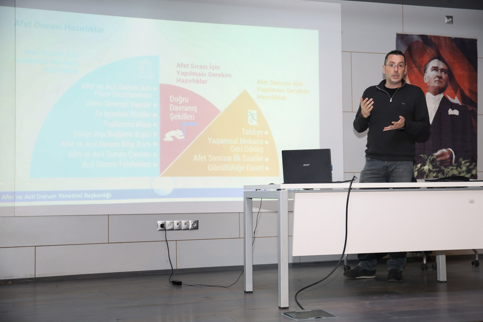 Nilüfer Belediyesi’nin düzenlediği “Bireysel Afet Farkındalık Eğitimi”ne katılanlar, depremden önce alınması gereken tedbirler, deprem sırasında ve deprem sonrasında yapılması ve yapılmaması gerekenleri öğrendi.