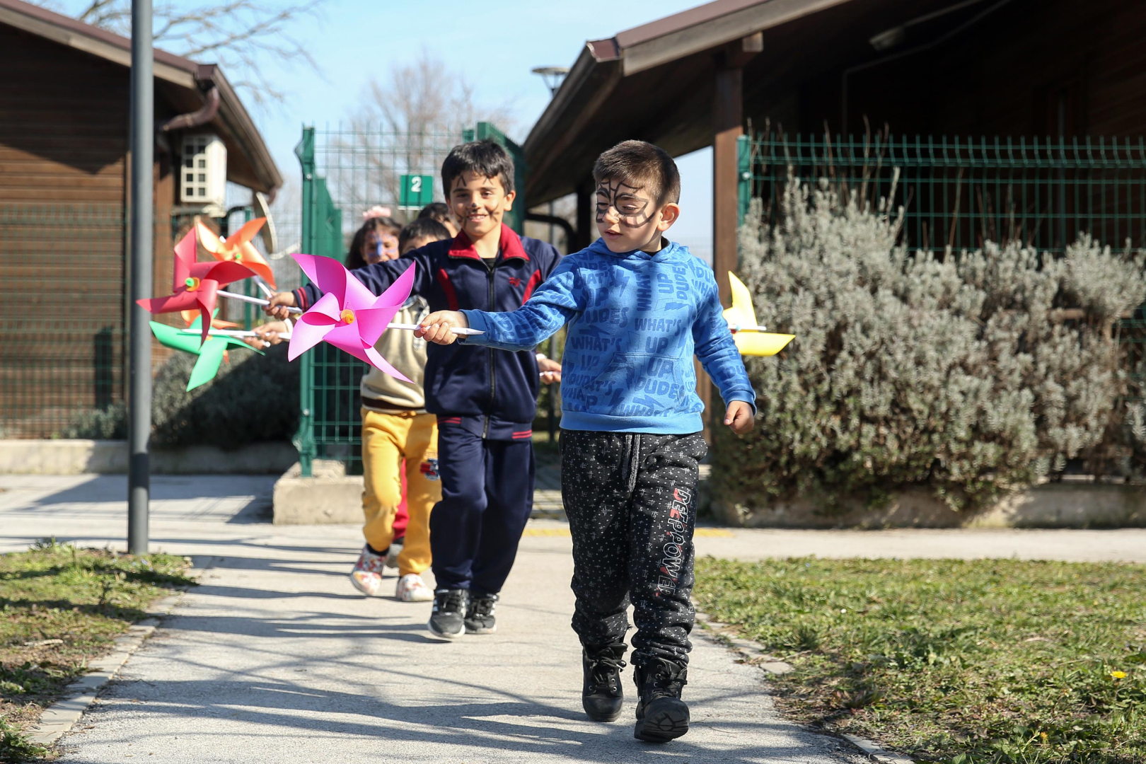 Kahramanmaraş merkezli depremlerin ardından Bursa’ya gelen depremzede ailelere tesislerinin kapılarını açarak konaklama desteği sağlayan Nilüfer Belediyesi, depremden psikolojik olarak etkilenen çocukların yaşadıklarını atlatmaları için de etkinlikler düzenliyor. Çocukların motivasyonlarını artırmak ve sosyalleşmelerine olanak sağlamak için hafta içi her gün iki saat gerçekleştirilen etkinliklere katılan çocuklar moral buluyor. Nilüfer Belediyesi Kadın ve Çocuk Akademilerinde görevli eğitmenler eşliğinde düzenlenen etkinliklerden biri de, Oyun Hareketi Derneği ve Belçika’da faaliyet gösteren Doğan Güneş Derneği katkılarıyla gerçekleşti. Bizim Bahçe Engelsiz Yaşam Merkezi’ndeki etkinliklerde çocuklar, gönüllerince eğlendi. Geleneksel sokak oyunlarının yanı sıra eğitici etkinlikler ve atölyelere katılan çocukların yüzü bir an olsun güldü. Palyaço eşliğinde seksek, yılan, hedef, kutu oyunlarına katılan çocuklar, eğitmenlerle birlikte rengârenk rüzgâr gülleri de yaptı. Yüz boyama etkinliğinde sevdikleri hayvanların resimlerini yüzlerine çizdiren çocukların mutluluğu, gözlerinden okundu.