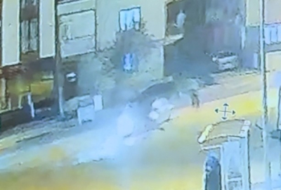 Kaza anı bir iş yerinin güvenlik kamerasına saniye saniye yansırken olay yerine gelen motosiklet sürücüsünün yakınları ile kazaya karışan aracın sürücüsü ve yakınları arasında arbede yaşandı.
