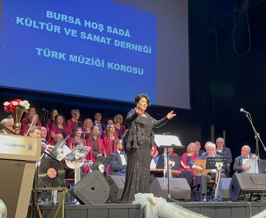Geniş bir davetli topluluğunun katıldığı programda Bursa Hoş Sadâ Kültür ve Sanat Derneği bünyesinde faaliyet gösteren Türk Müziği Korosu, dernek başkanı ve koro şefi Rüya Sani Gündiler yönetiminde unutulmaz bir sanat müziği konser sundu.