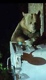 Vatandaşlar tarafından cep telefonuyla kaydedilen ayı, kendisini fark edenleri görünce yavrularını koruma güdüsüyle bir anda saldırganlaştı. Panik yaşayan vatandaşlar canlarını zor kurtarırken, araca binip hızla bölgeden uzaklaştı.