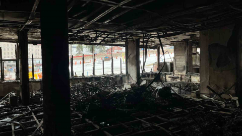 Otelin içerisini görüntüleyen İHA ekibi facianın boyutunu gözler önüne serdi. Yangında