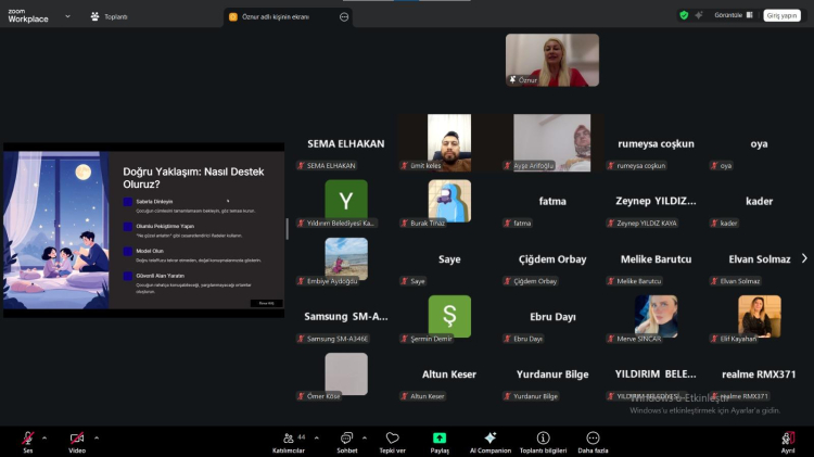 Sosyal belediyecilik anlayışıyla hayata geçirilen çalışma kapsamında, velilere ve alanda görev yapan uzmanlara yönelik bilgilendirici bir seminer düzenlendi. Online olarak düzenlenen seminerde konuşan Psikolojik Danışman ve Dil ve Konuşma Bozuklukları Uzmanı Öznur Kuş, pandemi sonrası dönemde konuşma bozukluğu şikayetlerinde bir artış yaşandığını ifade ederek, erken farkındalık ve doğru yönlendirmenin çocukların gelişimi açısından kritik öneme sahip olduğunu belirtti.