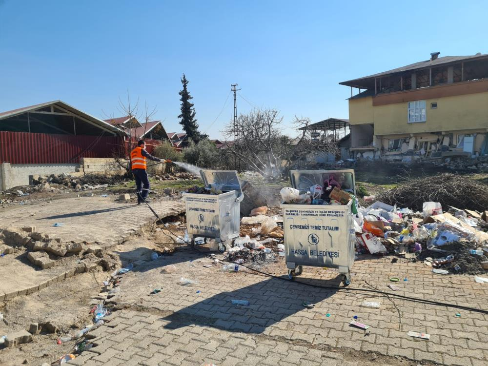 Kahramanmaraş merkezli, 10 ilde büyük yıkıma sebep olan iki depremin sonrasında tüm imkânlarını seferber ederek afet bölgesine ihtiyaç malzemesi ulaştıran Yıldırım Belediyesi, bölgede alt yapı bozulması, su ve temizlik malzemelerine erişimin kısıtlı olmasıyla oluşabilecek salgın hastalıklar ile haşere oluşumu riskine karşı harekete geçti. Hatay’ın Hassa ilçesinde salgın riskine karşı temizlik çalışmaları gerçekleştiren Yıldırım Belediyesi ekipleri, vatandaşların sağlığı için bulaşıcı hastalıkların taşınmasına neden olan haşereler ve kemirgenlere karşı ilçede ilaçlama yapıyor.