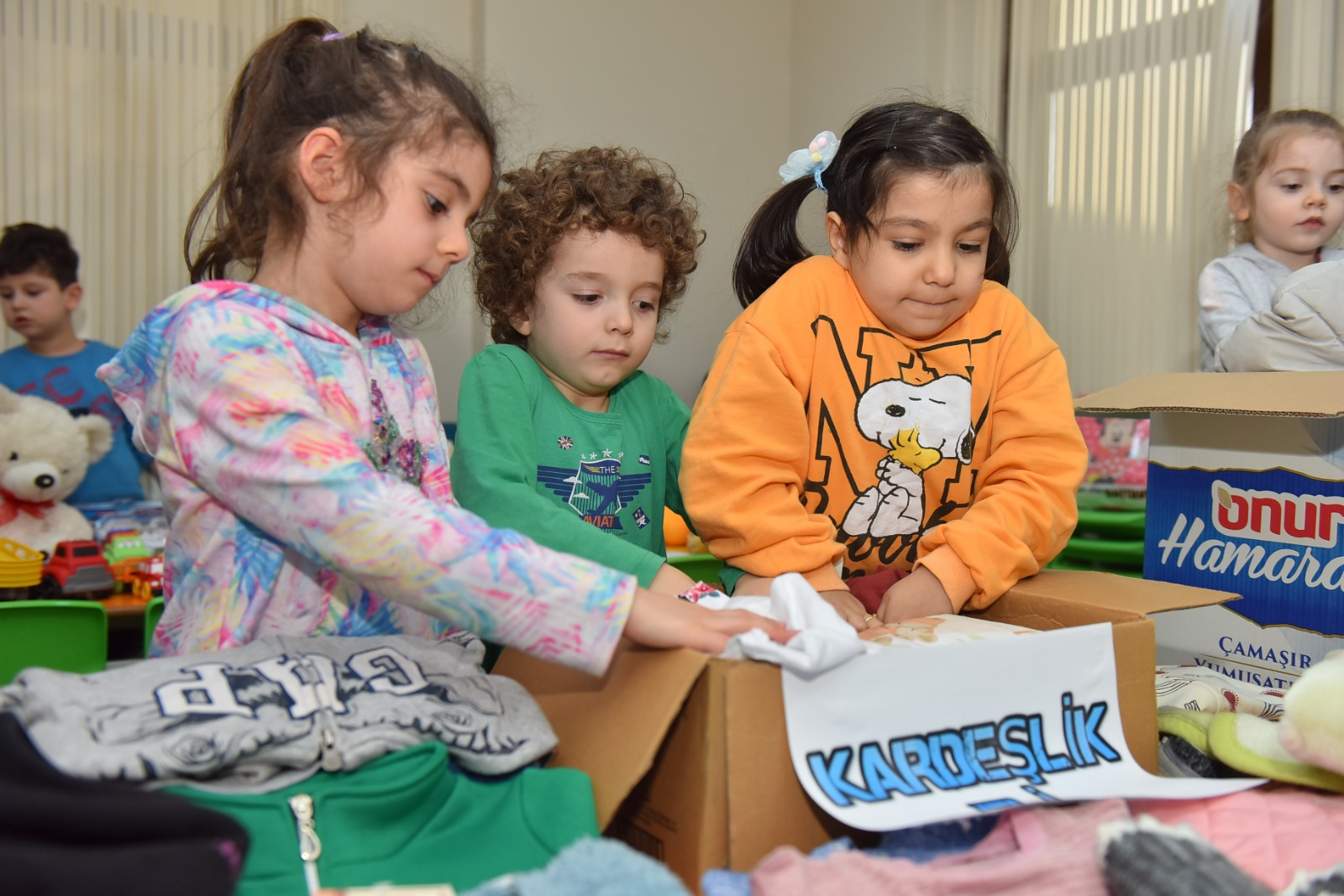 AFAD koordinasyonunda yürütülen yardım çalışmalarına, Yıldırımlılar destek olmaya devam ediyor. Yıldırım Belediyesi Kreşi öğrencileri, afet bölgesindeki çocuklara gönderilmek üzere en sevdiği kıyafetleri, oyuncakları ve atıştırmalıkları kolilere doldurdu. Çizdikleri resimlerle de afetzedelerin acılarını paylaşan minikler, depremin akranları üzerindeki etkisini bir nebze olsun hafifletebilmeyi amaçlıyor.