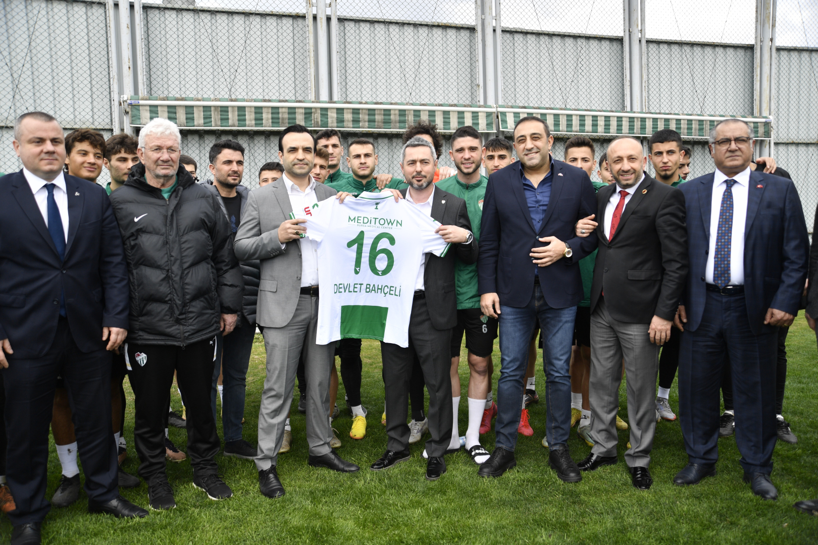 Bursaspor yönetimi, kulübü ziyarete gelen MHP Nilüfer İlçe Başkanı Levent Karakoç ve beraberindeki heyete, MHP Genel Başkanı Devlet Bahçeli’nin adının yazılı olduğu forma hediye etti. MHP heyeti de formayı yarın Bahçeli’ye vereceklerini söyledi.