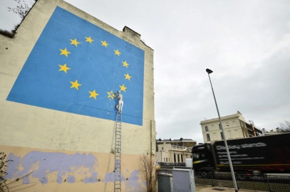 Fransa'nın Dover bölgesinde, Dover Feribot Terminali yakınlarında bir binanın duvarında Banksy’nin Brexit resmi, Mayıs 2017’de bir gecede ortaya çıktı. Resimde bir inşaat işçisi AB bayrağındaki bir yıldızı elindeki keskiyle parçalarken görülüyordu.