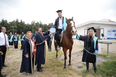 Bursa Uludağ Üniversitesi’nde 2022-2023 akademik yılını başarıyla tamamlayan öğrenciler mezun oluyor. Mennan Pasinli Atçılık Meslek Yüksekokulu öğrencileri ise mezuniyet belgelerini at üzerinde aldı.