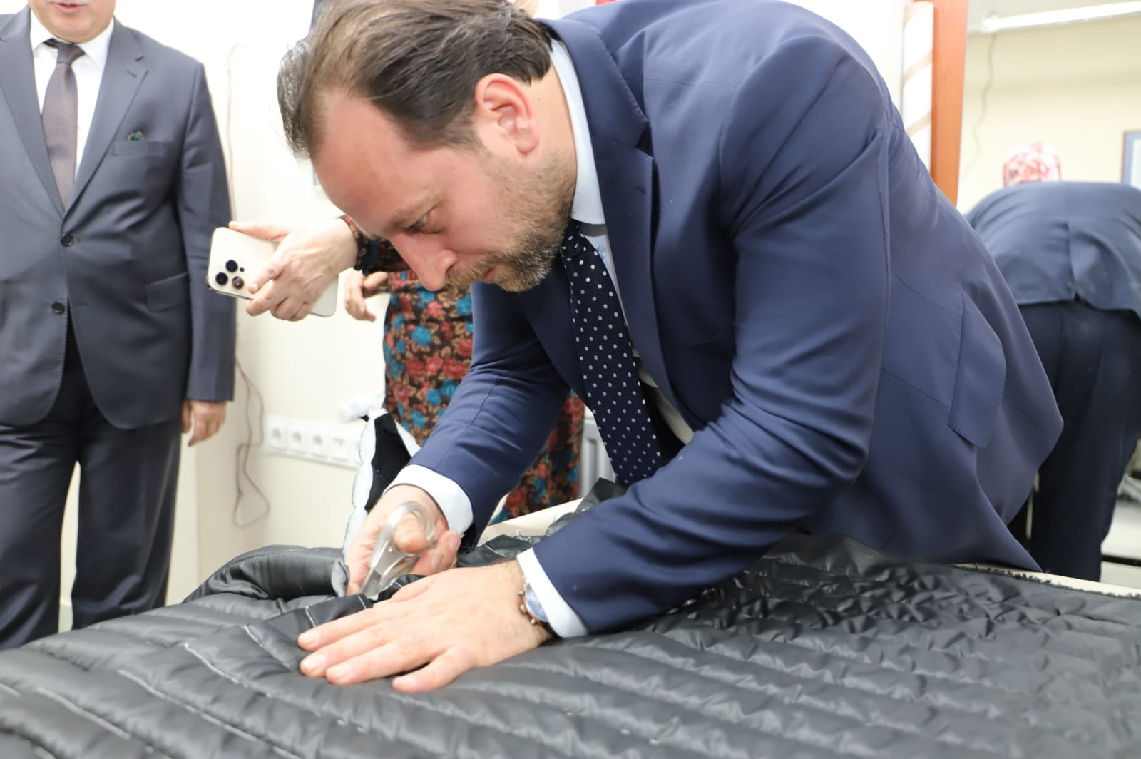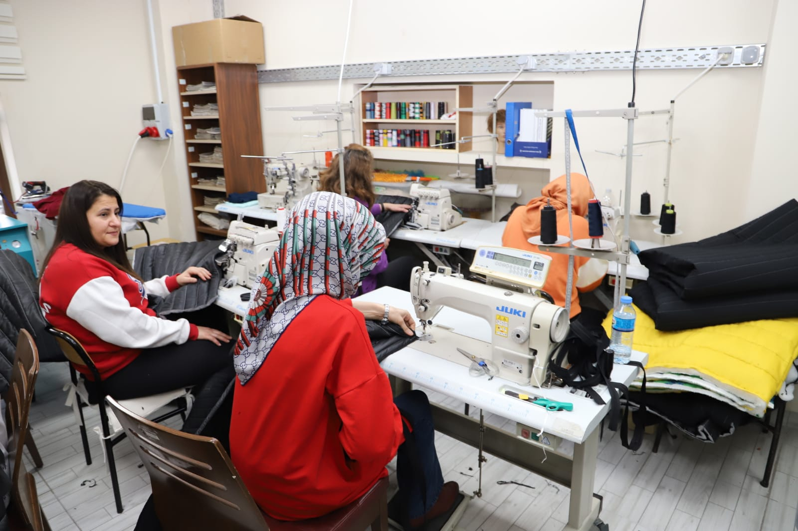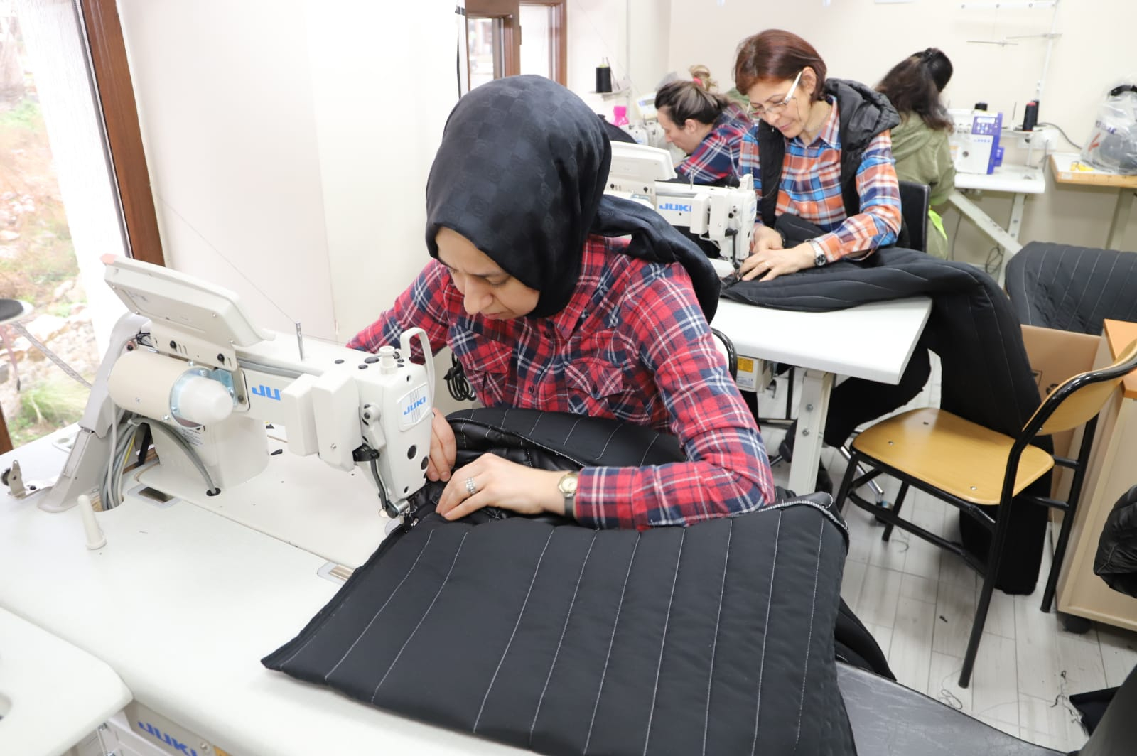 Bursa Olgunlaşma Enstitüsünde çalışan usta öğretici ve kursiyerler, depremden etkilenen vatandaşlar için kıyafet, battaniye gibi ihtiyaç malzemeleriyle başladıkları üretimi uyku tulumuyla sürdürüyor.