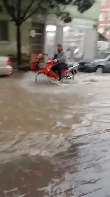 İnegöl'de etkili olan sağanak yağış hayatı felç etti. İlçeyi esir alan yağış nedeniyle sokaklar ve caddeler göle döndü.