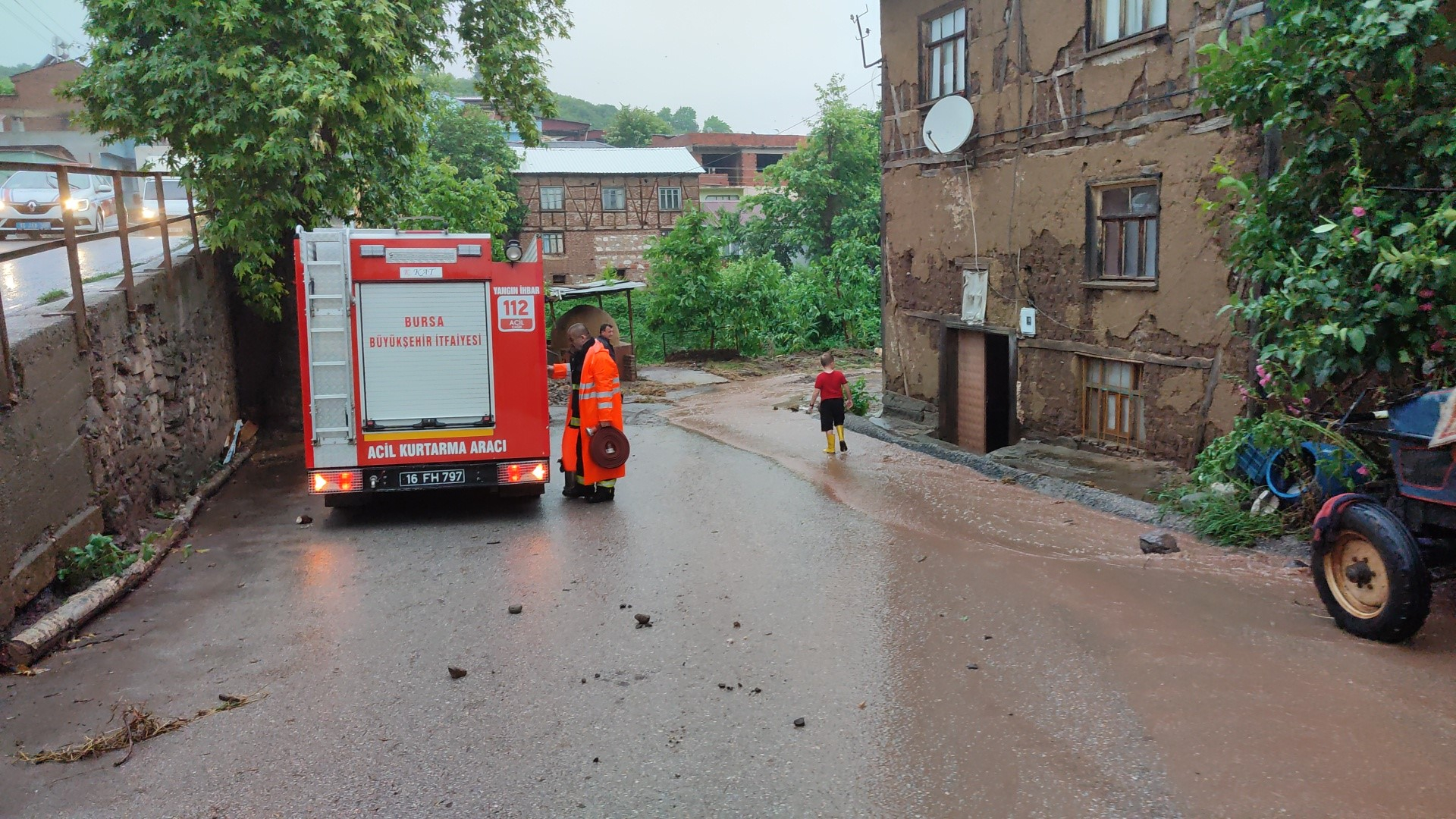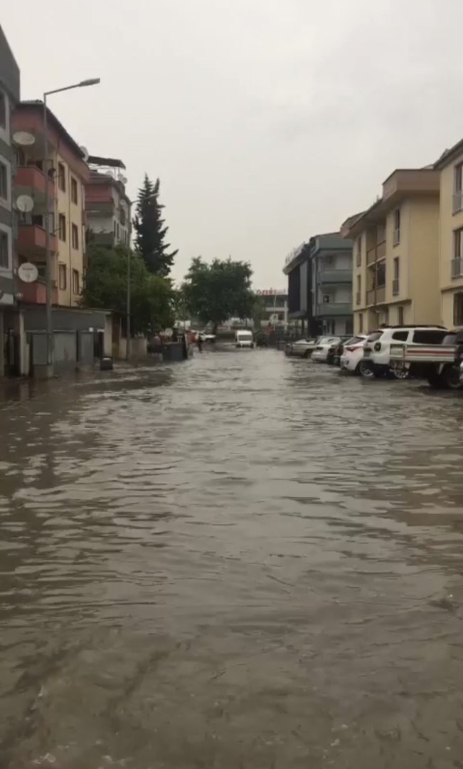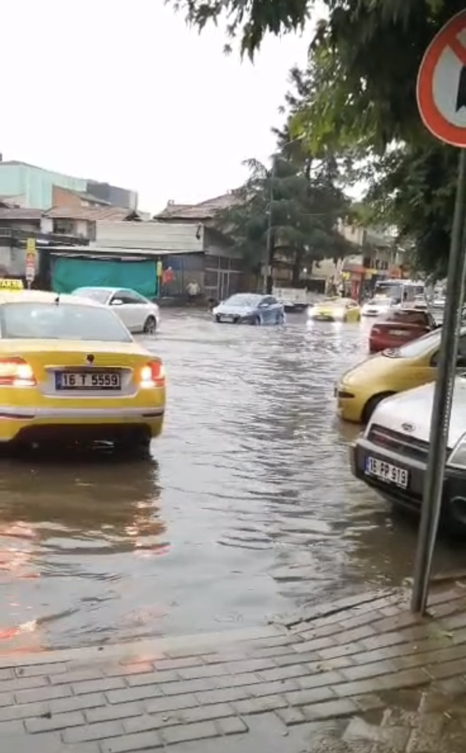 Bursa'nın birçok ilçesinde etkili olan sağanak yağış hayatı felç etti. Evler, yollar ve arabalar su altında kaldı,