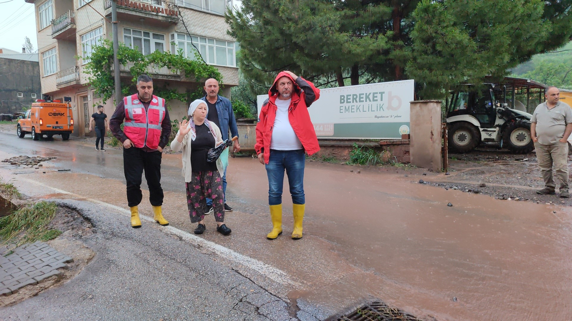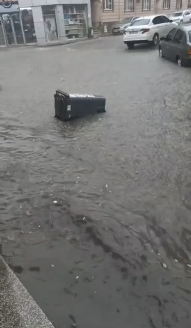 Sokakları göle döndüren şiddetli yağmur nedeniyle bazı ev ve iş yerlerini de su bastı.