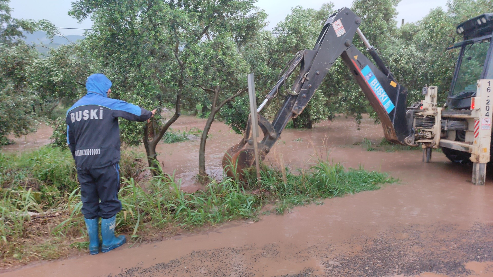 Sölöz bölgesinde başta zeytinlikler olmak üzere birçok bölgede su baskınları yaşandı.