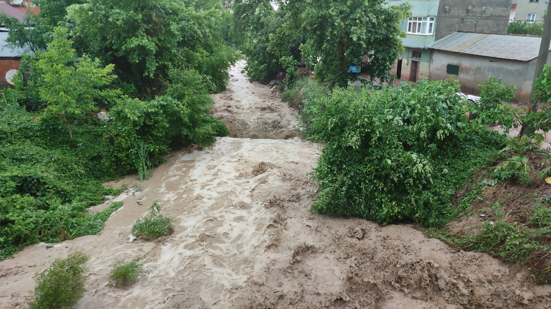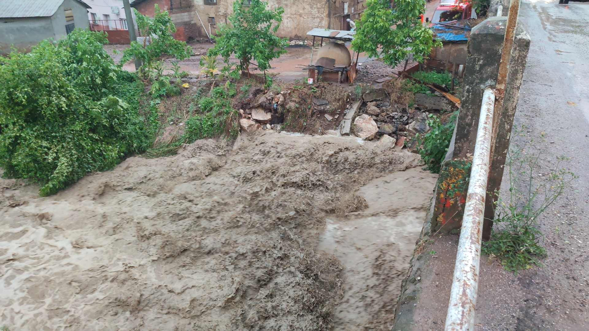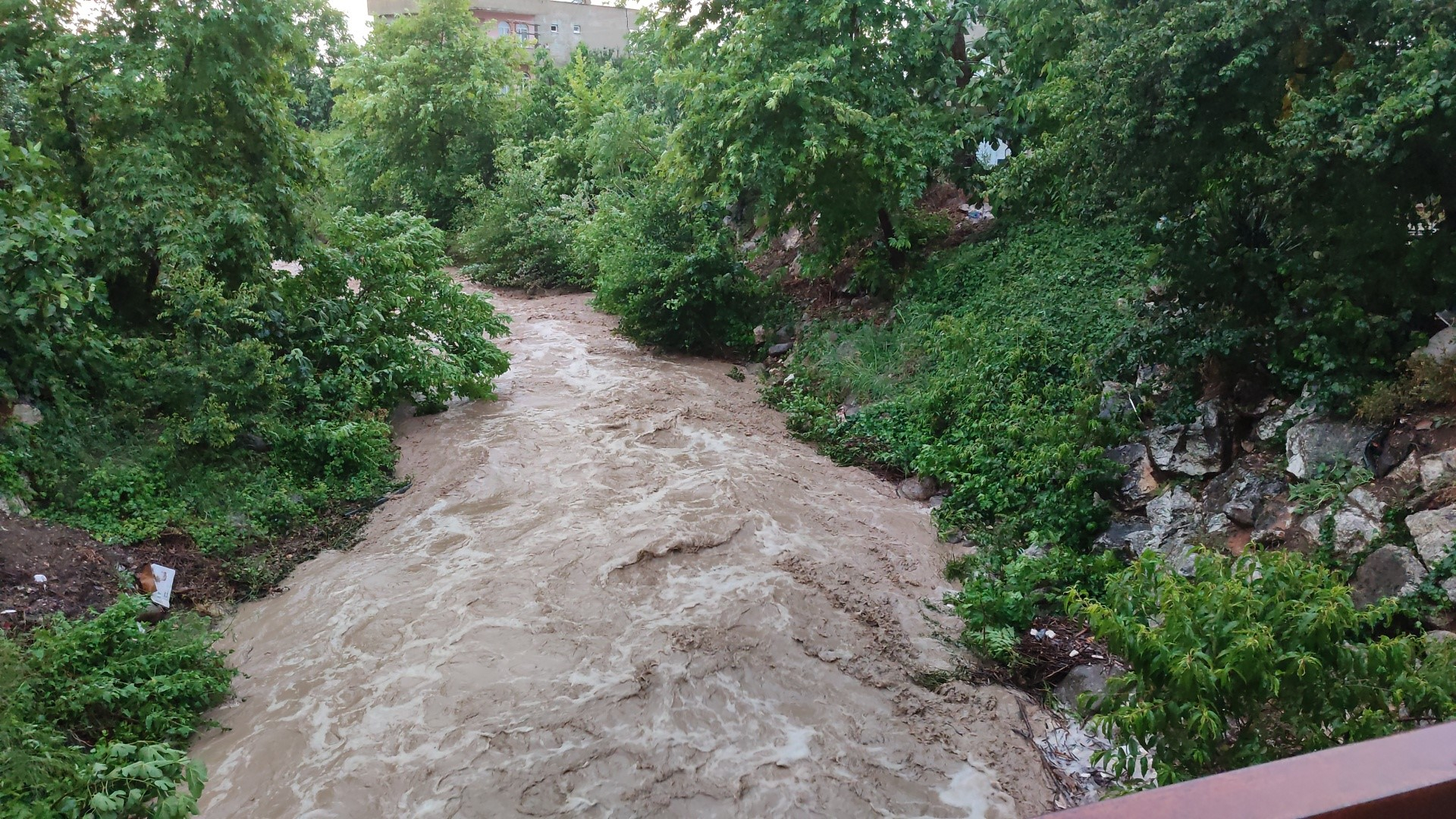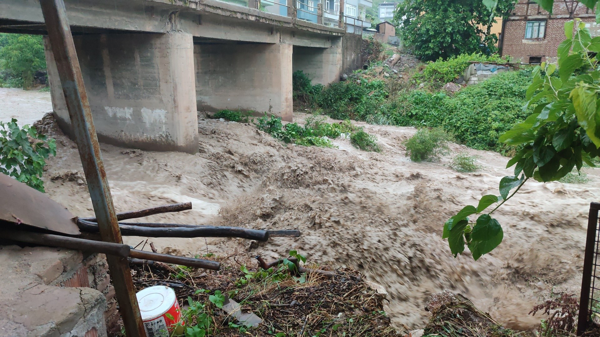 Taşan sular dere yakınlarındaki evlerde su baskınlarına neden oldu.