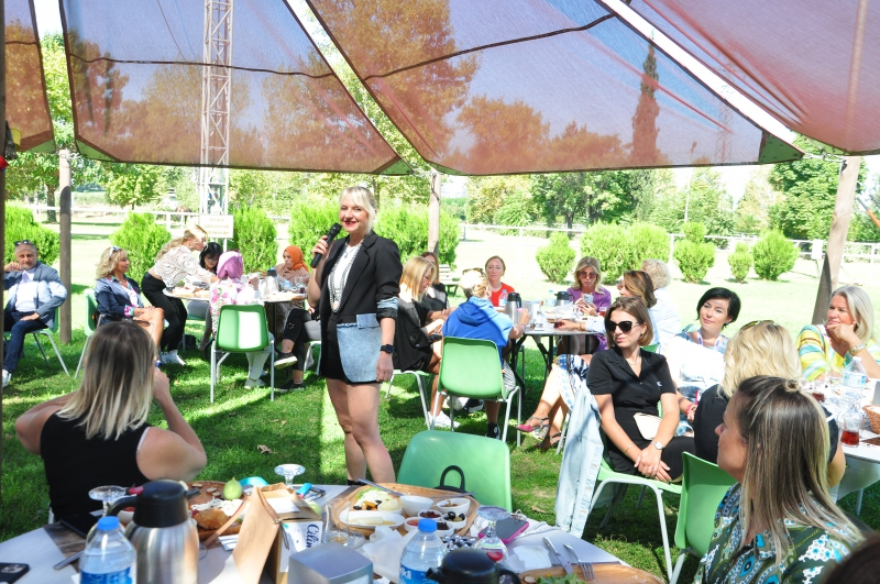 BUSADER Başkanı Tülin Günbatılı verdiği bilgilerden dolayı konuk konuşmacı Meral Önal’a teşekkür plaketi verdi.