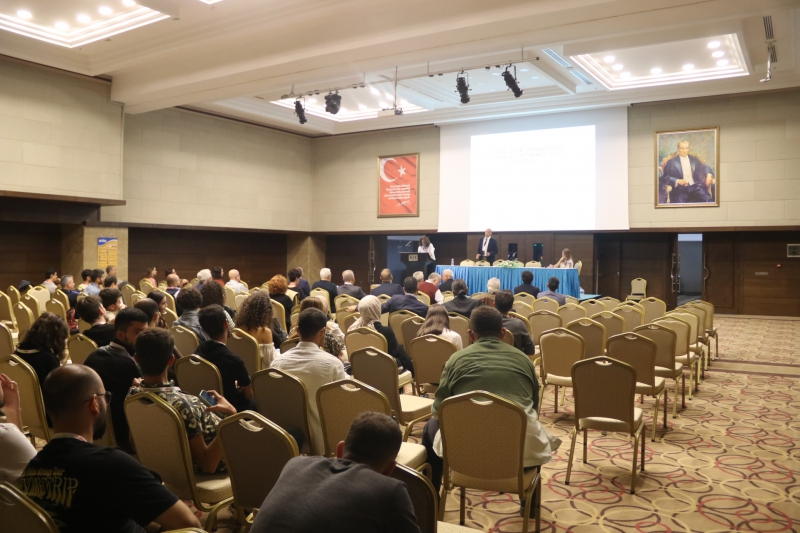 UYMSİB Başkanı Prof. Dr. Senih Yazgan, katılımcılara dünyada meyve-sebze ticaretinde iklim değişikliğine dair bir sunum gerçekleştirdi.