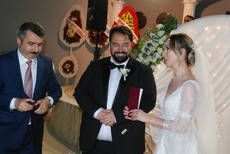 Çiftin nikah cüzdanını Yıldırım Belediye Başkanı Oktay Yılmaz takdim etti
