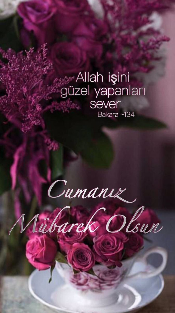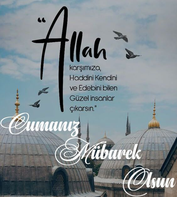 Cumanız mübarek olsun. Gününüz maddi ve manevi anlamda aydınlık, gönlünüz hoş olsun. Sizi kedere, üzüntüye sevk edecek ne kadar olumsuzluklar varsa sizden her daim uzak olsun. Allah sonumuzu hayretsin. Kurtuluşa erenlerden eylesin. Melekler daima duacınız olsun. Yüreğiniz ferah, ilhamınız bol olsun. Sevgili peygamberimiz, şefaatçimiz olsun. Cumamız mübarek olsun.