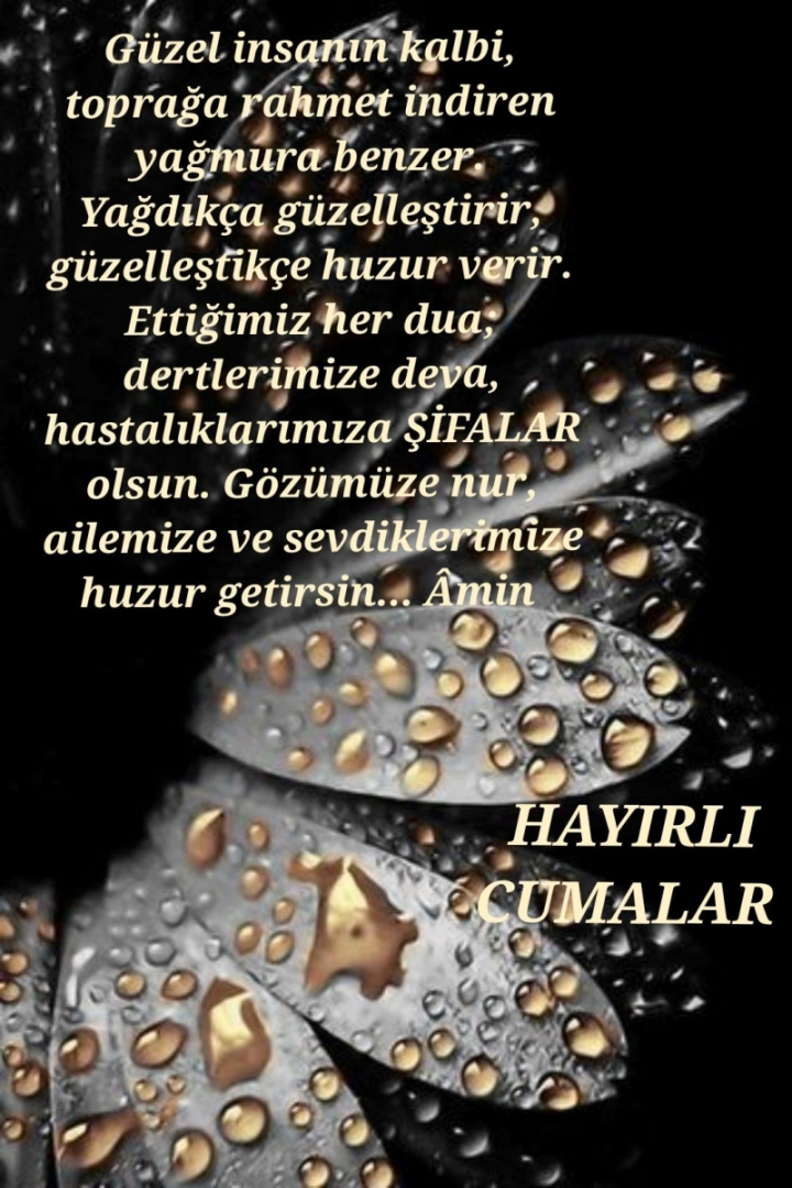 Ettiğin her dua derdine deva, sağlığına şifa, gözüne nur, gönlüne huzur, ailene ve sevdiklerine huzur getirsin. Hayırlı Cumalar.