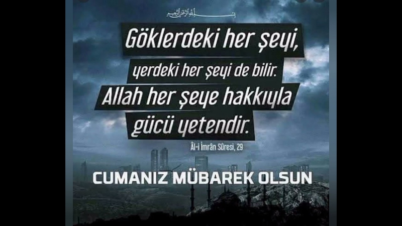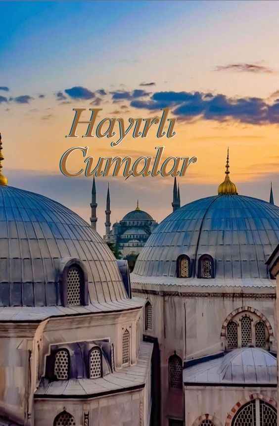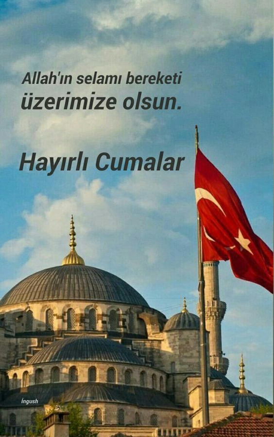 Yükü sevgi, özü saygı, gücü barış, süsü hoşgörü olan mübarek dinimizin seçtiği haftanın özel günü olan Cumanızı kutlarım… Ey Büyük Rabbim! Dinimizden dolayı bizi yok etmeye çaba sarf edenlere fırsat verme. Bizleri o büyük İslam dininin yolundan ayırma…. Hayırlı Cumalar Bizi yoktan var eden, varlığından haberdar eden, yaratıp imtihan eden, imtihan edip sabır veren Allah'ın müminlerini bağışlaması dileğiyle Cumanız Mübarek olsun!