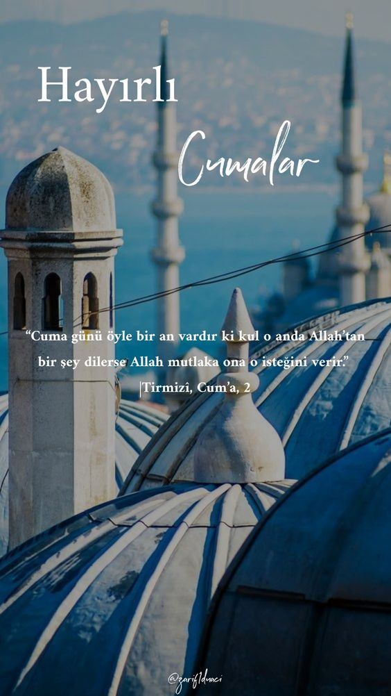 Kalbimiz iman ile gönlümüz İslam ile dilimiz Kur’an ile kulağımız ezan ile gözümüz nur ile dolsun… Evimiz huzurlu ve neşeli olsun. Hayırlı Cumalar.. Allahım, bizi, dinde yalnız sana ihlasla ibadet eden haniflerden kıl! Yönümüzü Yanlış bildiklerimizden Hakka tevcih eyle! Hayırlı Cumalar. Ey Nefsim Şeytana Yem Olmak mı Yoksa Cennette Gül Olmak mı Niyetin, Bırak Yakamı Secde Edeyim Sen Huzura Er, Ben İmanla Öleyim. Hayırlı Cumalar. Ey gönül Olmadı mı 'nasip değilmiş' de talip ol rızaya Tevekkül et, kaderi gör Aşkla yönel yüce Mevlâya. HAYIRLI CUMALAR. "Dün geçti yarın da henüz gelmedi. Dün için yapacak bir şey yok. Yarına sağ çıkacağımız belli değil. Bugün Cuma kıymetini bil.."Gözlerinizin sadece güzellikleri göreceği bir gün olsun. #hayırlıcumalar