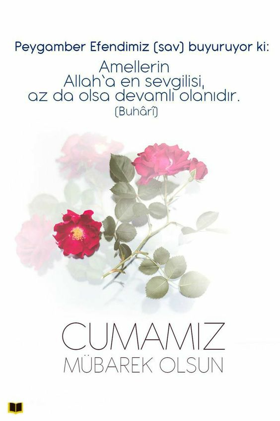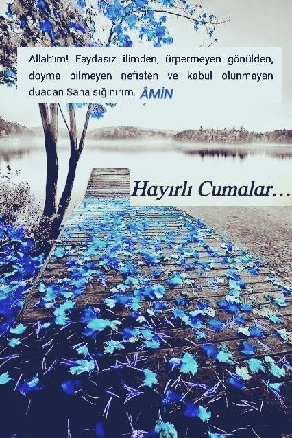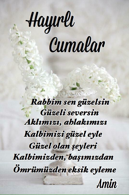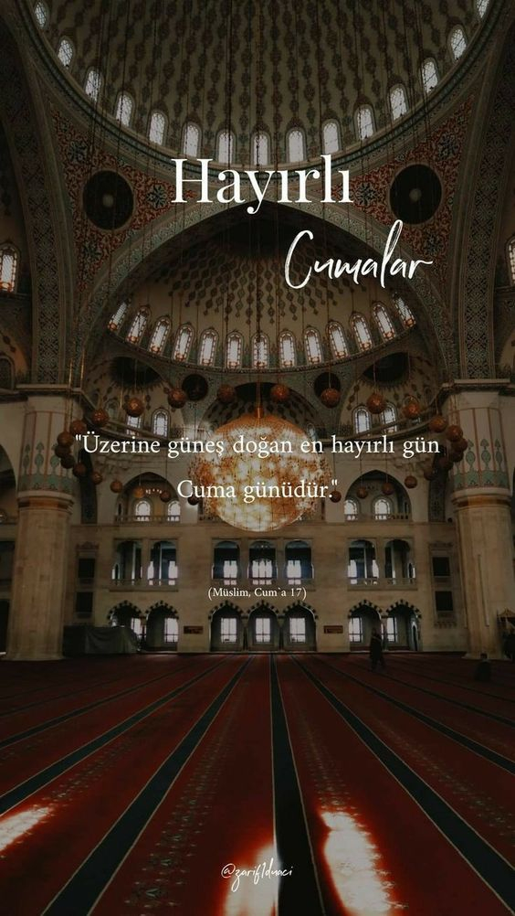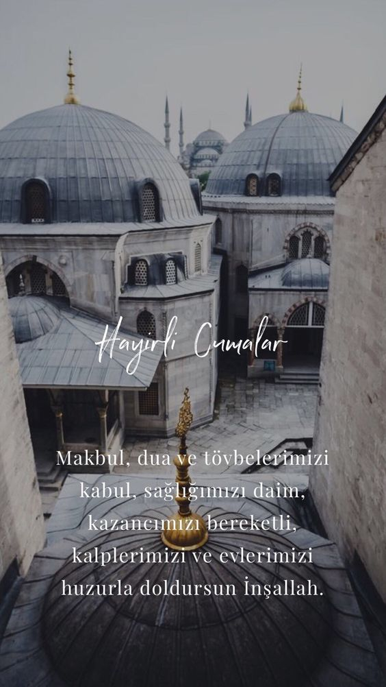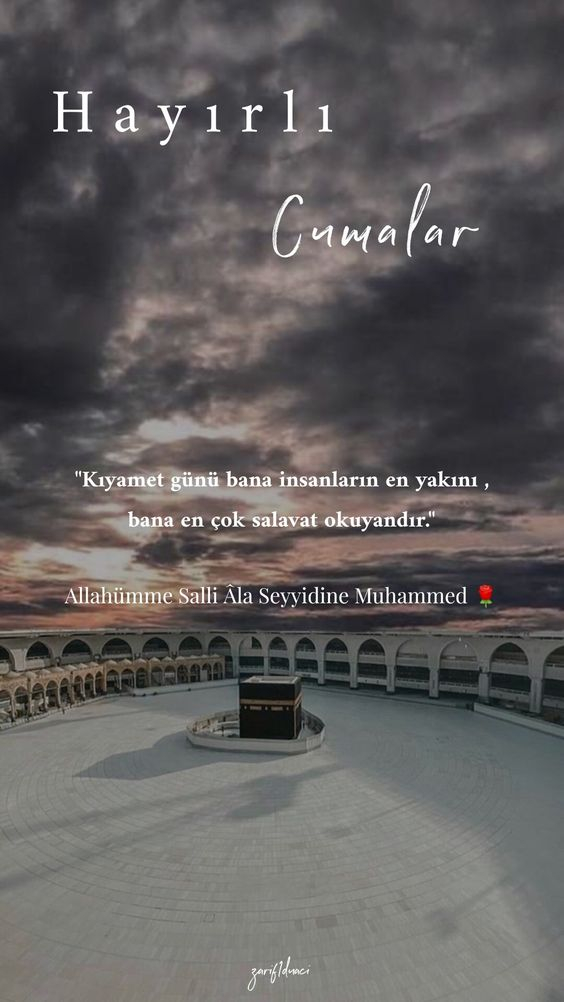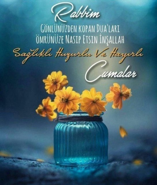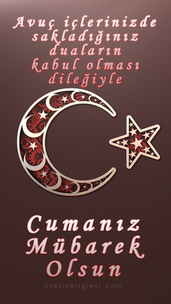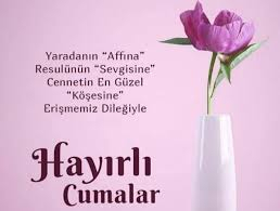 Cumanız mübarek olsun. Gününüz maddi ve manevi anlamda aydınlık, gönlünüz hoş olsun. Sizi kedere, üzüntüye sevk edecek ne kadar olumsuzluklar varsa sizden her daim uzak olsun. Allah sonumuzu hayretsin. Kurtuluşa erenlerden eylesin. Melekler daima duacınız olsun. Yüreğiniz ferah, ilhamınız bol olsun. Sevgili peygamberimiz, şefaatçimiz olsun. Cumamız mübarek olsun.