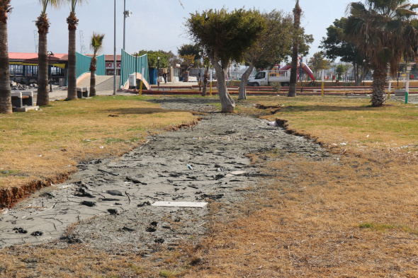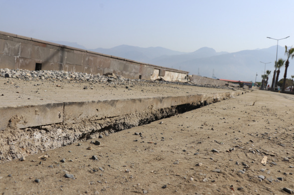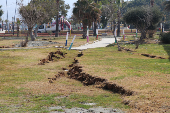 Asrın felaketi olarak nitelendirilen depremlerin ardından Hatay'ın İskenderun ilçesinde sahil bandındaki kaldırım ve yeşil alanlarda yarıklar oluştu.
