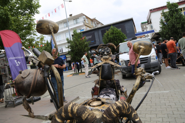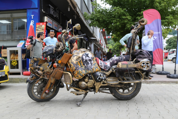 Artvin'in Arhavi ilçesinde kaporta ustası olan Tamer Günsel, Mad Max Filminden esinlenerek hurda malzemelerden el yapımı motosiklet yaptı.