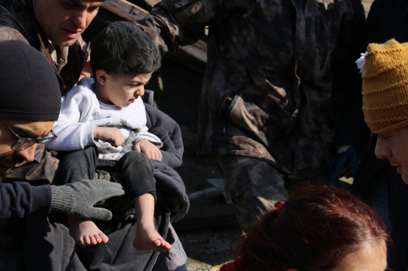 Depremden 30 saat sonra kurtarılan çocuğun yüzündeki korku, kurtarma ekiplerinin mutluluğu ise yüzlerine yansıdı.