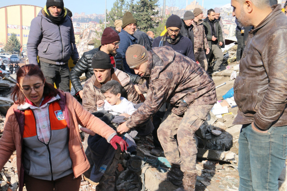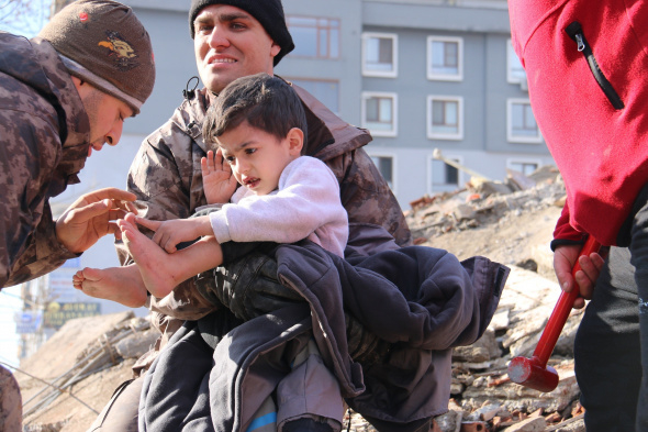 Kahramanmaraş'ta adının Şahin olduğu öğrenilen 5 yaşlarındaki çocuk enkazdan 30 saat sonra sağ çıkartıldı.